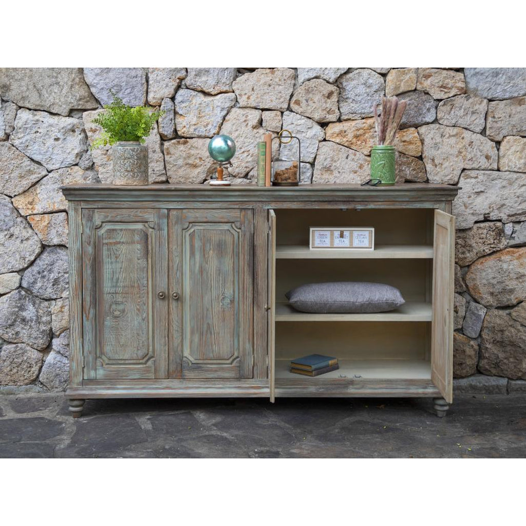• This uniquely designed accent console/ cabinet is crafted in solid pine wood