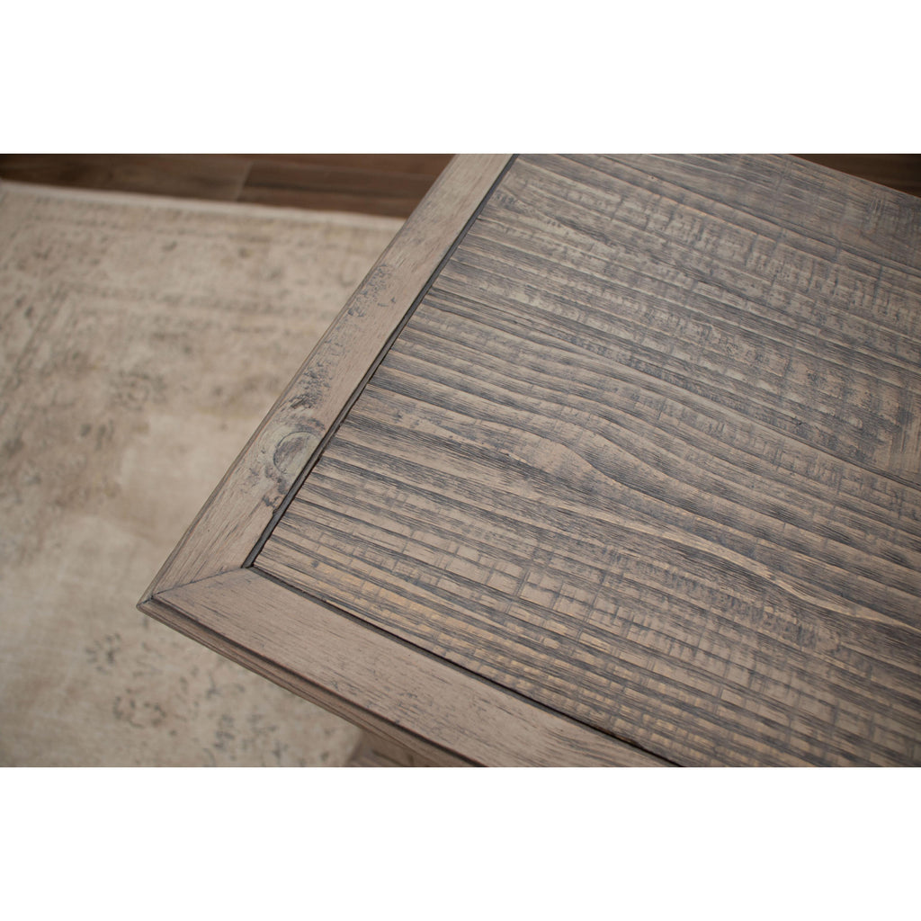 • Multi-step matte lacquer, wire-brushed wood, sandy brown finish