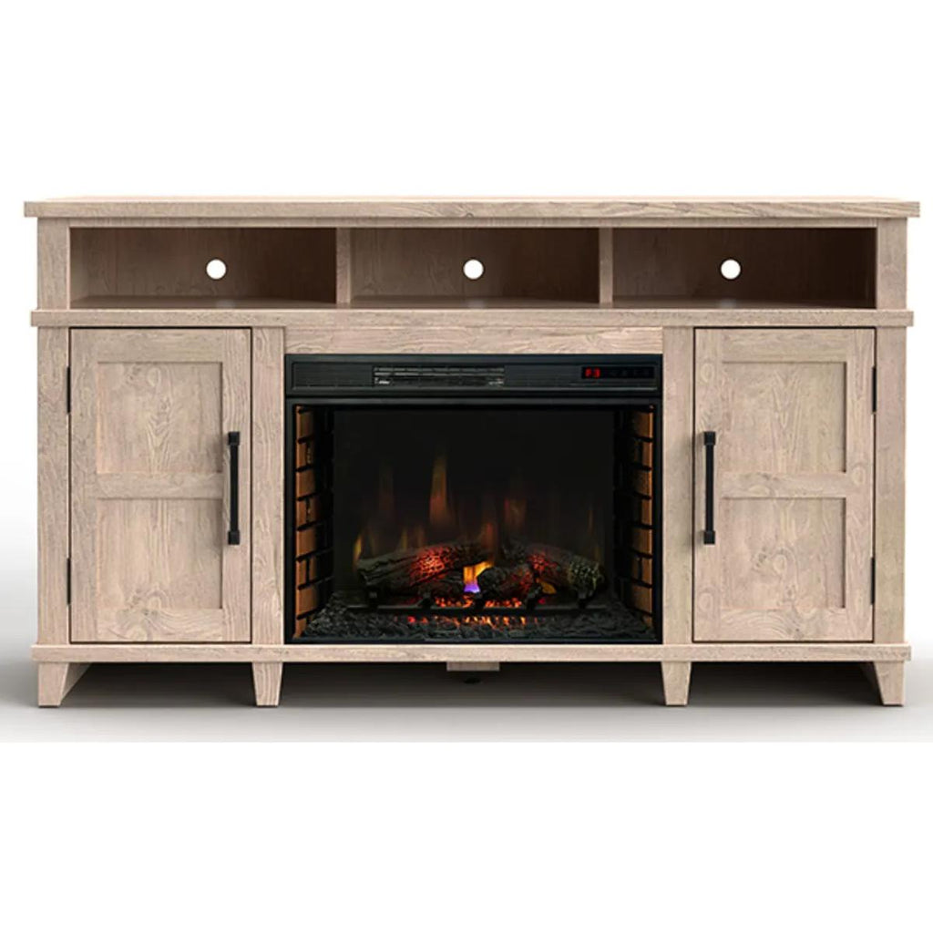 • Electric heated fireplace included with remote-controlled heat and flame intensity