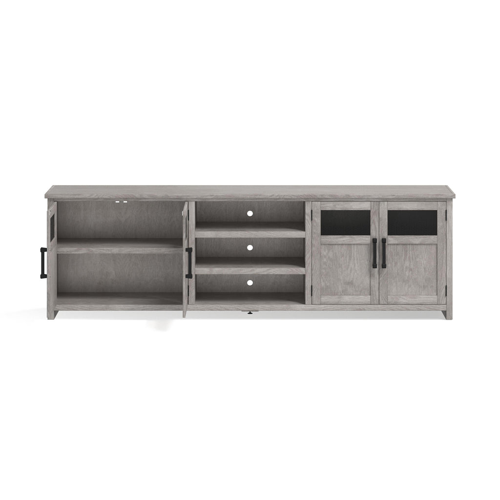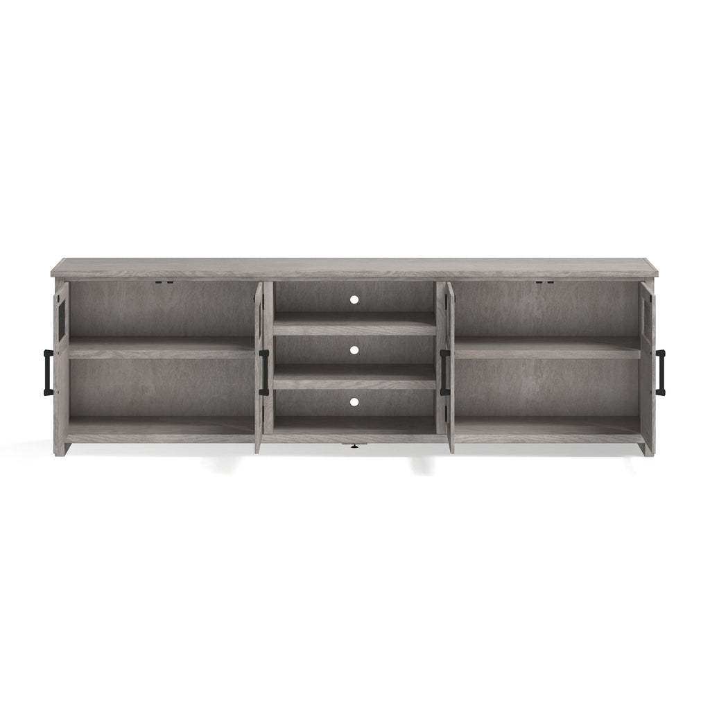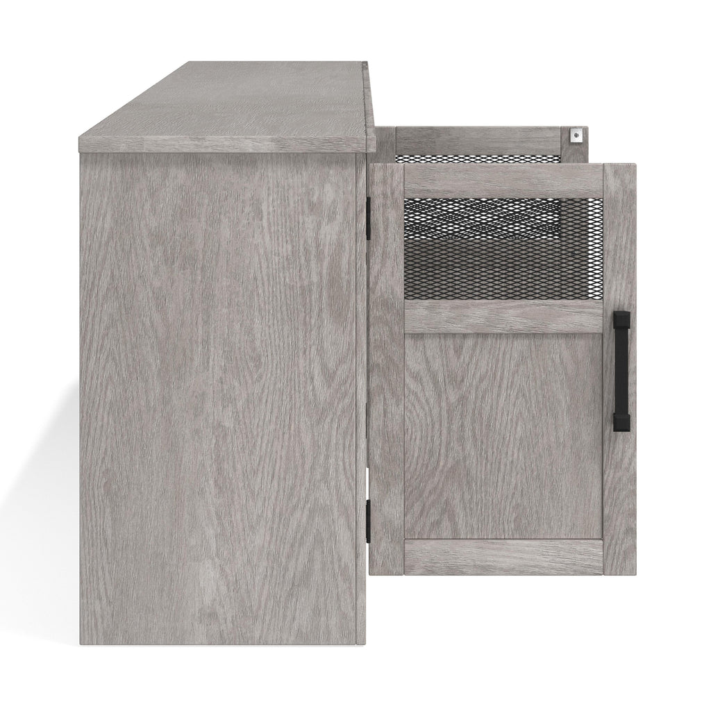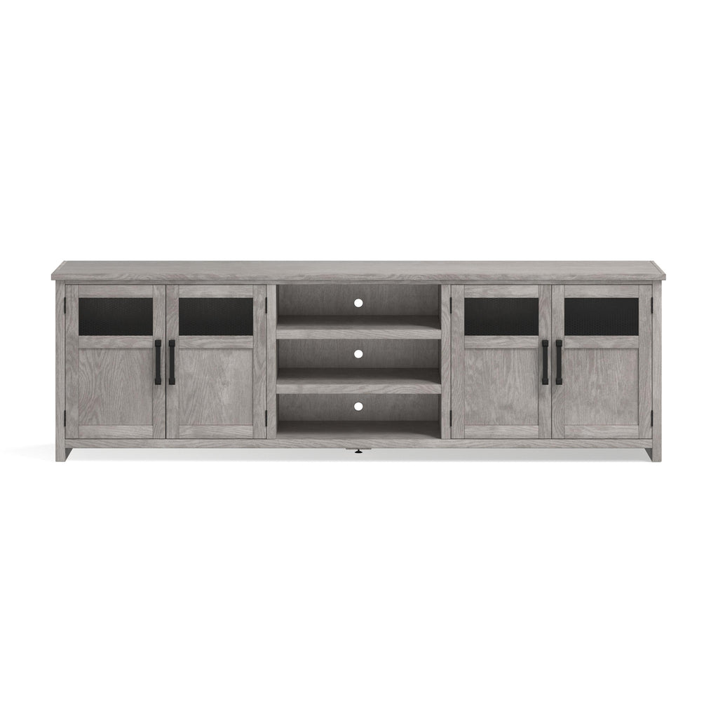 • Holds up to a 110" TV without hanging over w/o hutch (81" w/hutch)