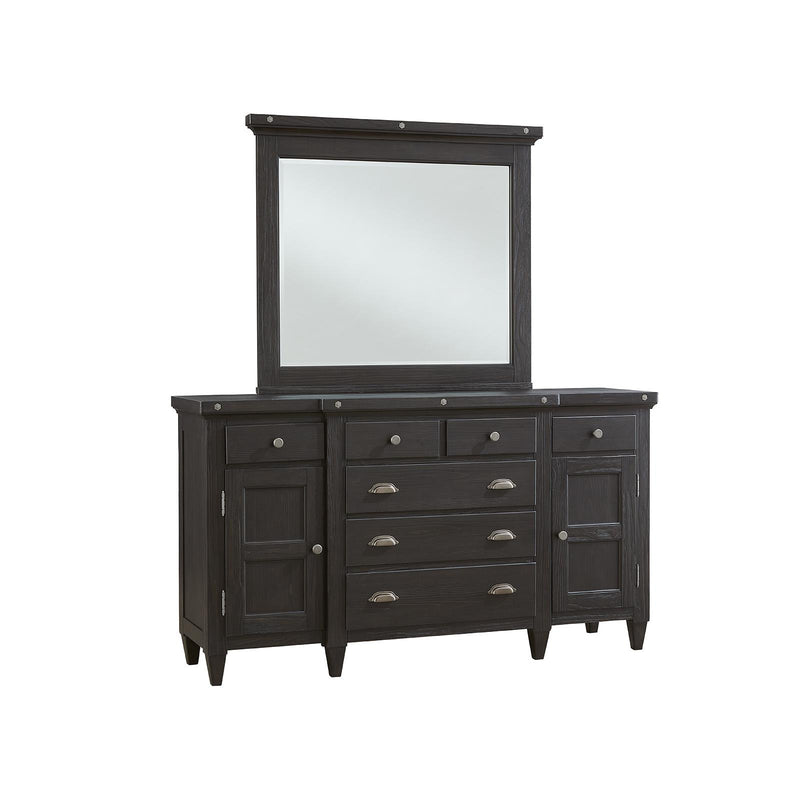 • Material: Wirebrushed Random Hi/Low Argentina Pine Veneer and Argentina Pine Solids and Metal Nut & Bolt and Fabric - Weathered Bronze
