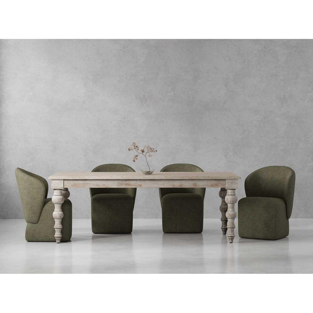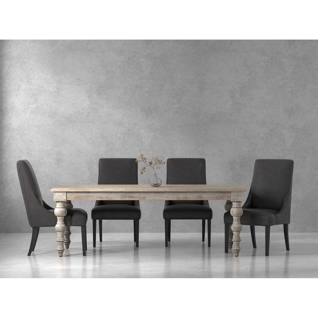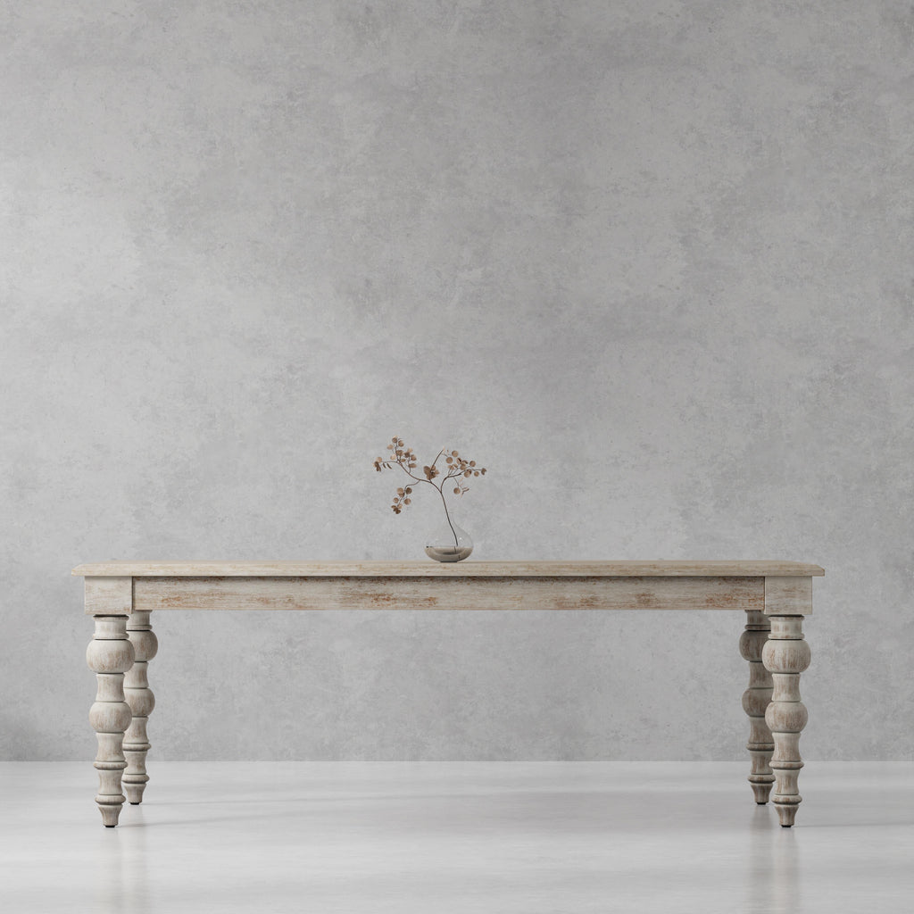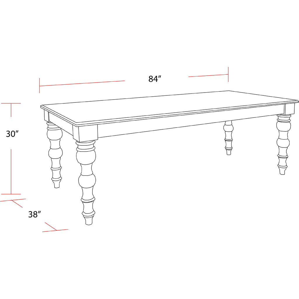 • Shaped table with finished edge is complemented by a wide apron and shapely legs for classic charm