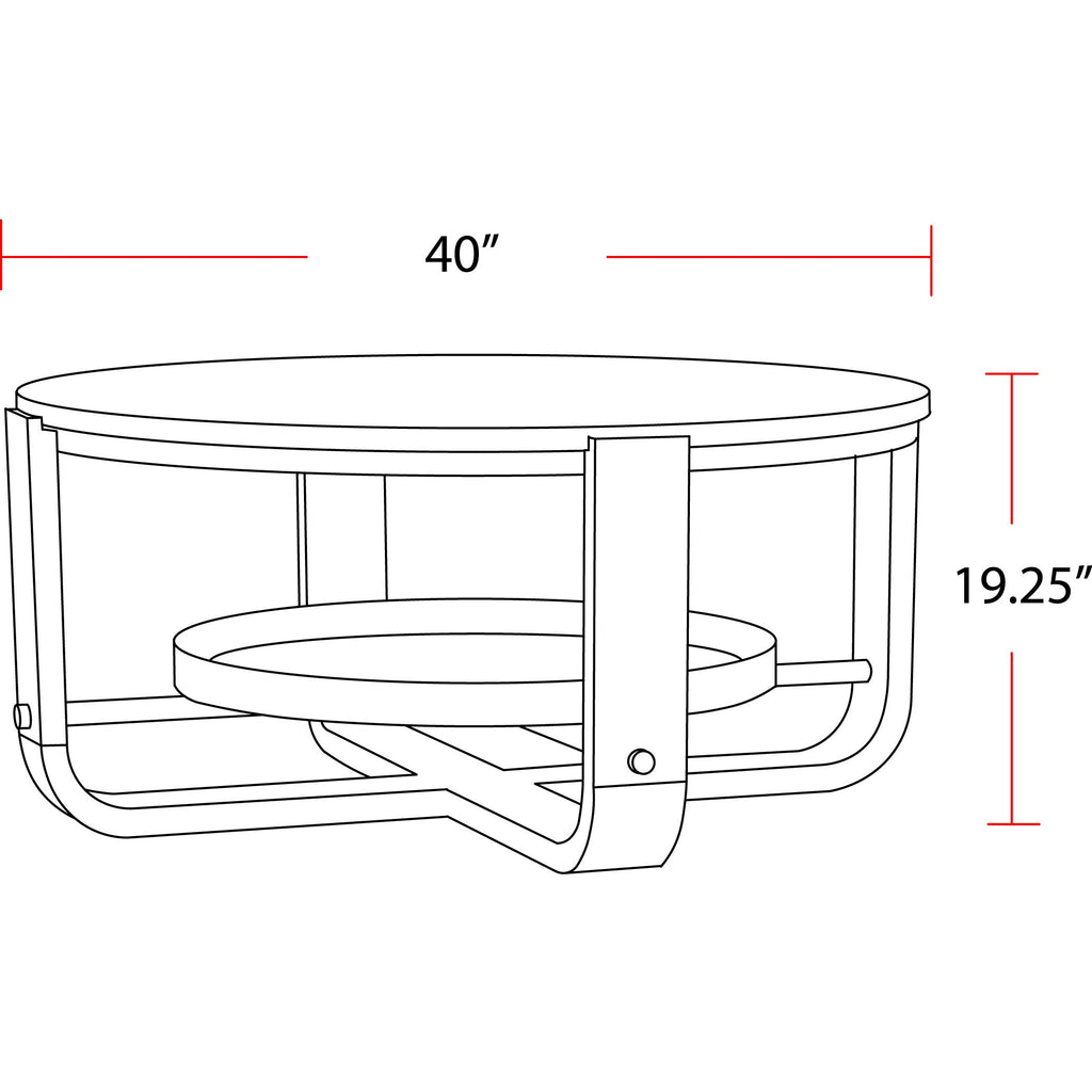 • Fun yet functional 39-inch round cocktail table makes the perfect mate for sofa or sectional
