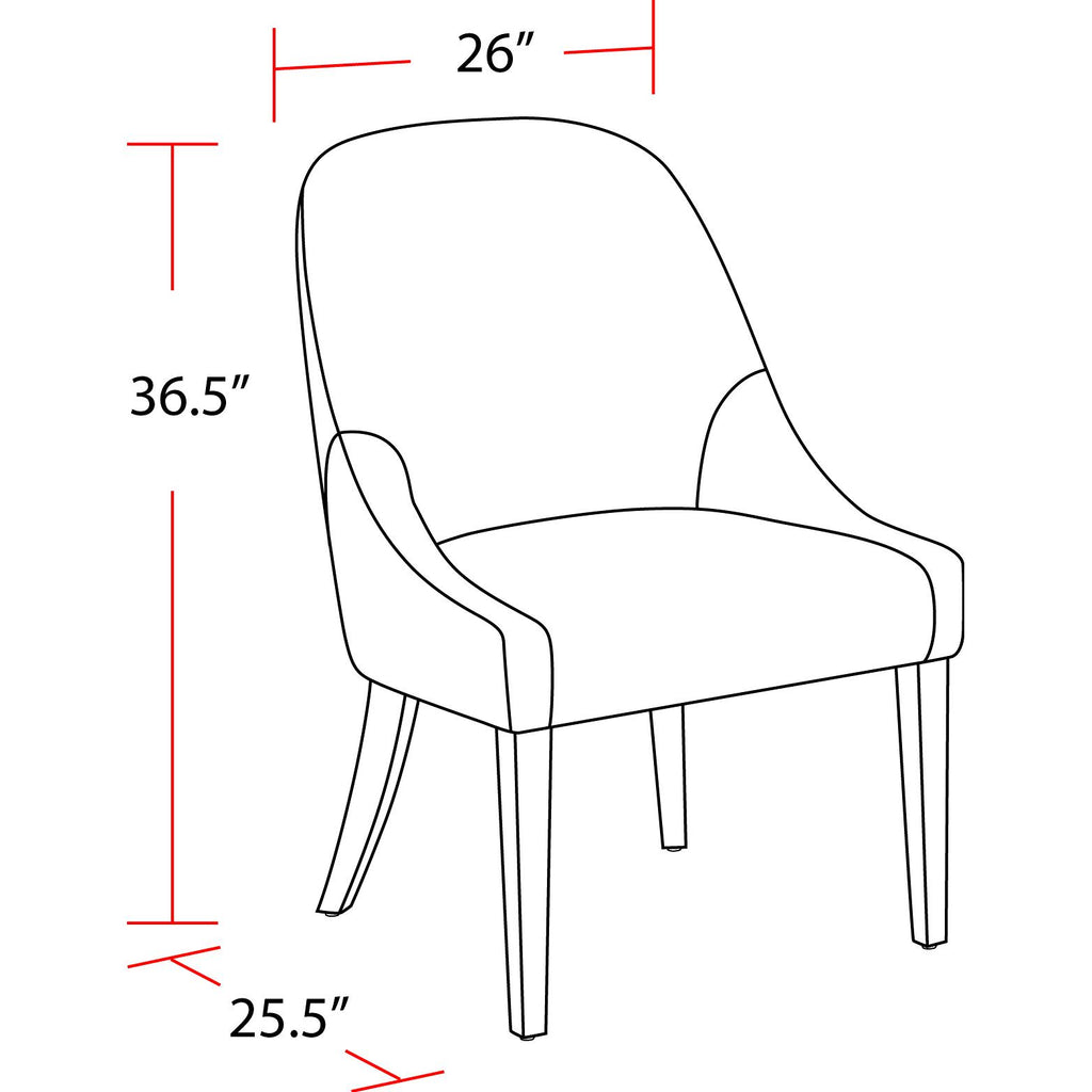 • The chair back flows seamlessly into sloped, low-profile arms that make it easy to slide in and out of while making the room feel more open and less crowded