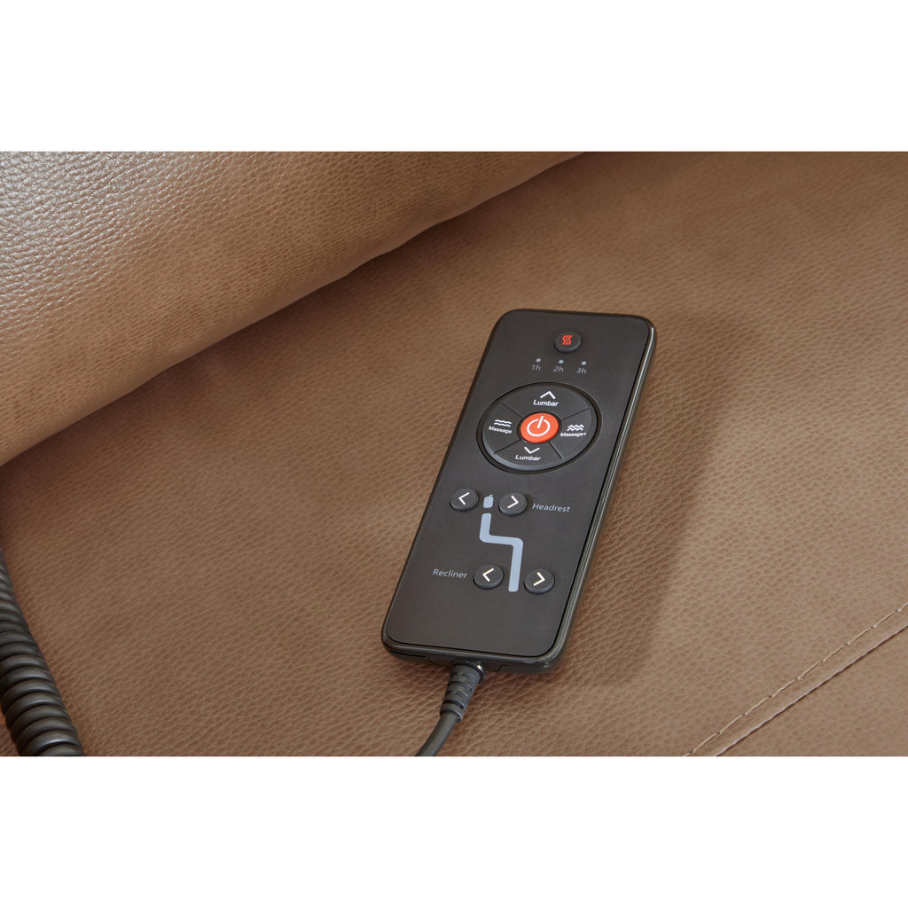• Designed with two zero-gravity, triple power recliners, with integrated remote-controls that provide customizable lumbar support, soothing heat, and massage features