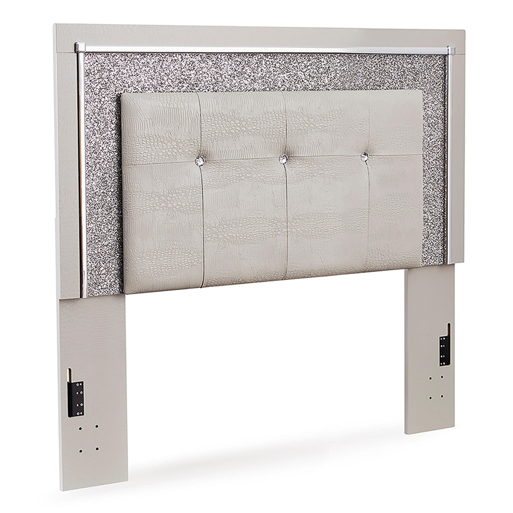 • Faux crystal tufted silver upholstery with faux alligator effect
