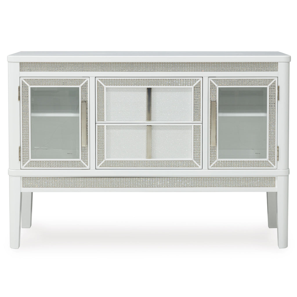 • 2 glass-front cabinets, each with adjustable shelf