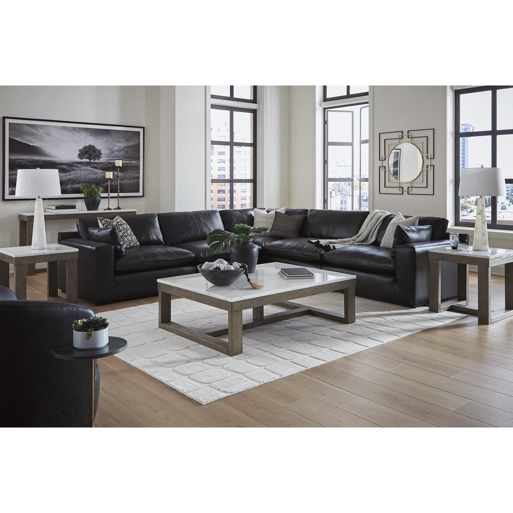 • Modular pieces can float anywhere; sides are finished (with no connectors)