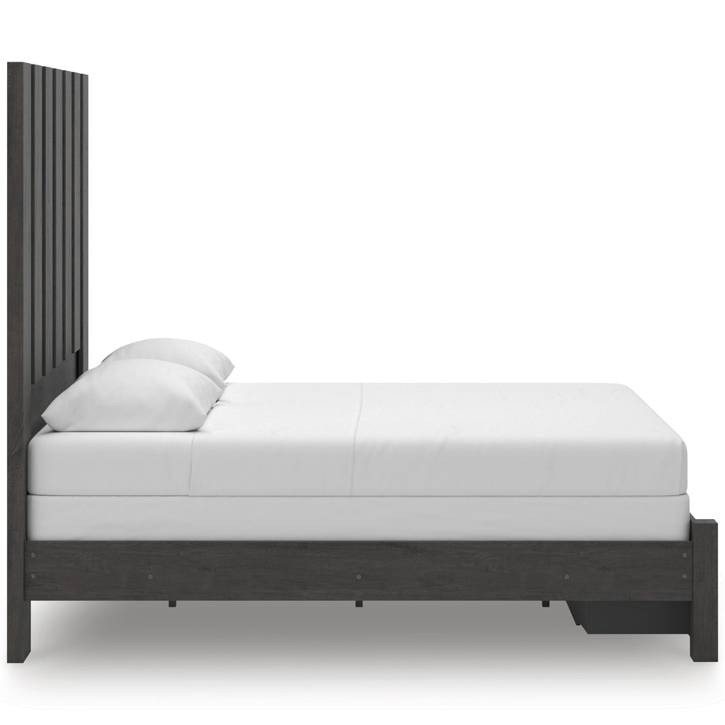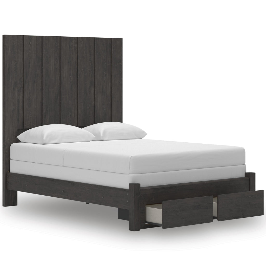 • Includes headboard panel, headboard posts, storage footboard and rails