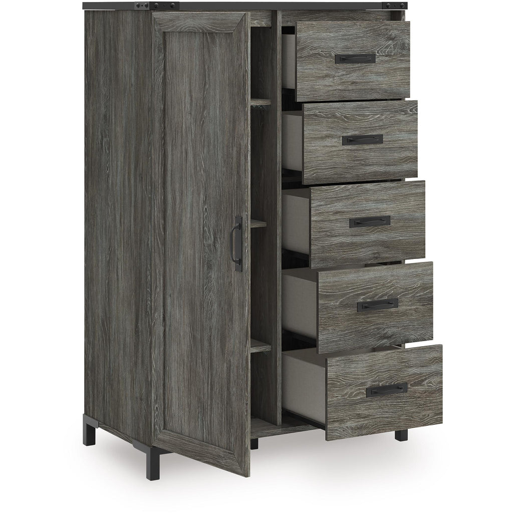 • Rustic warm gray finish over replicated oak grain with authentic touch