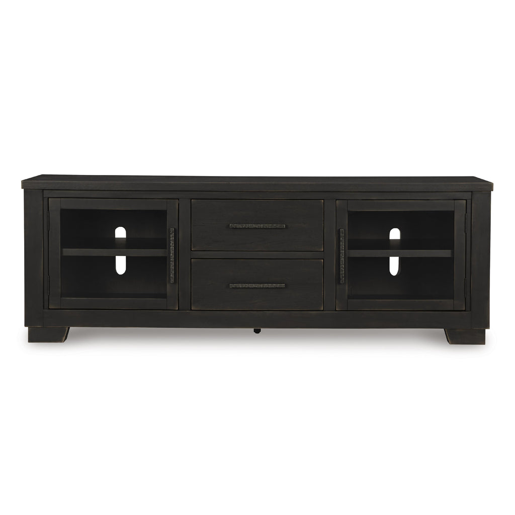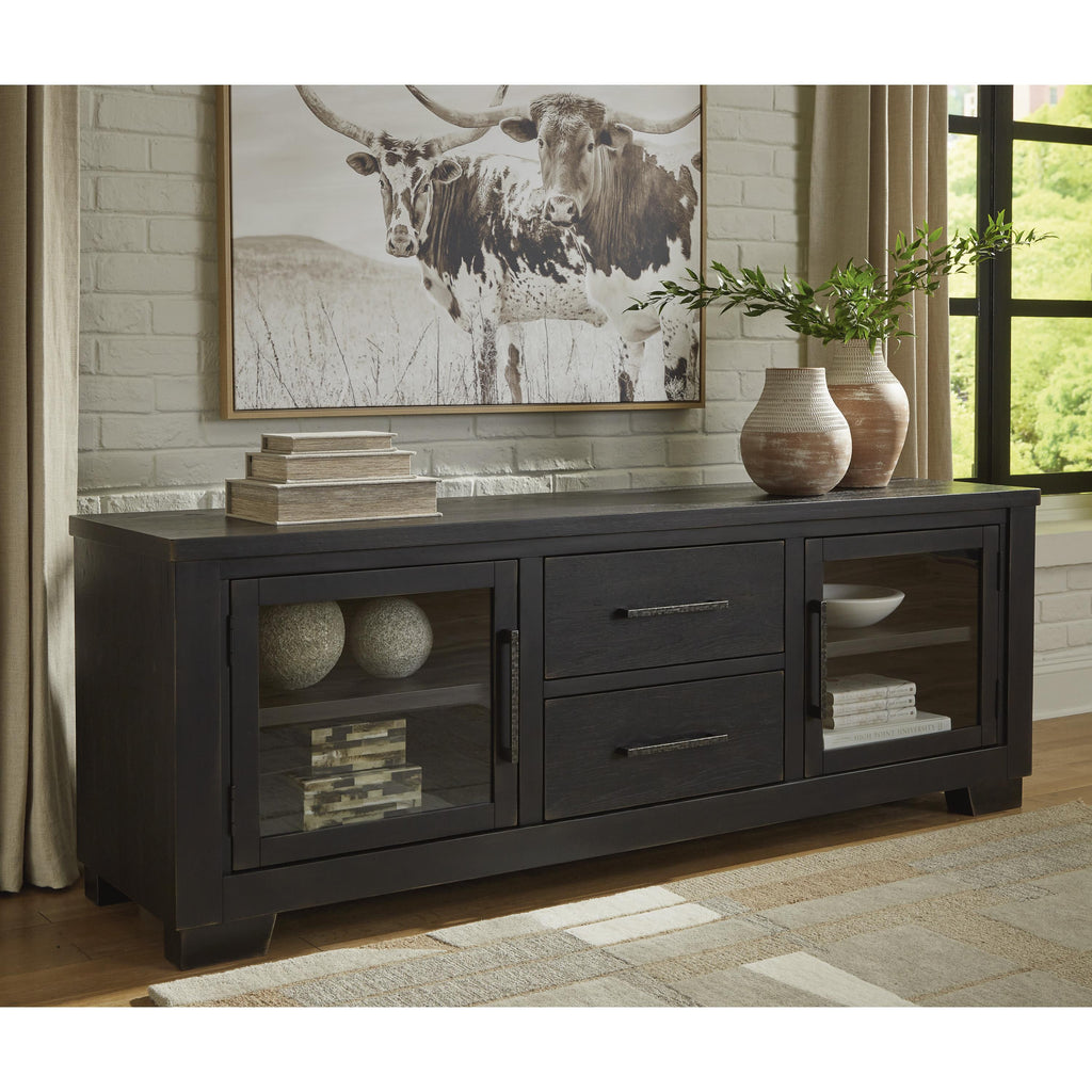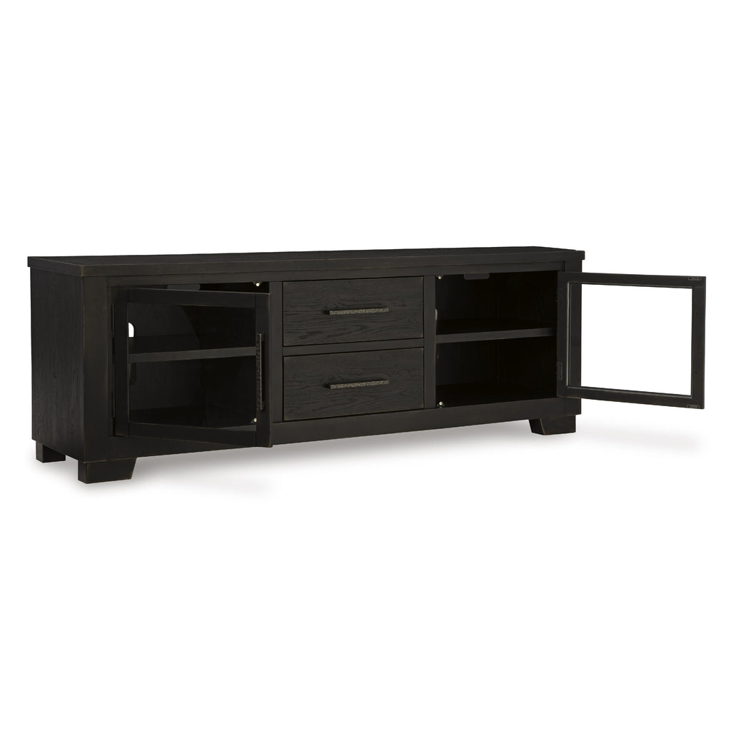• 2 cabinets with glass front doors, each with an adjustable shelf