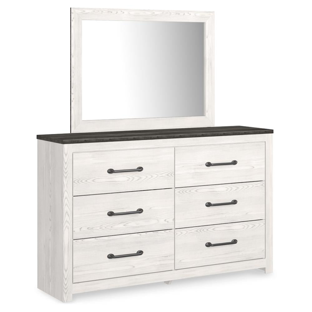Cool, clean and casually modern. This bedroom package's wispy whitewash and gray finish sets the tone for your calming sanctuary.... Cool, clean and casually modern. This bedroom package's wispy whitewash and gray finish sets the tone for your calming sanctuary. This set includes the bed headboard, footboard and rails, the dresser with the dresser mirror and two nightstands. View more