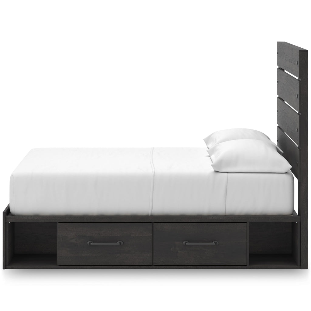 • Includes panel headboard/footboard, 2 under bed storage units and roll slats