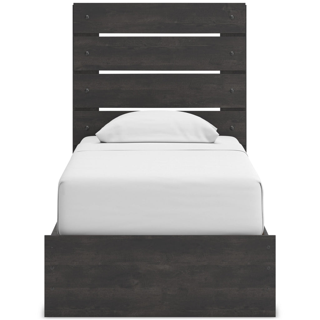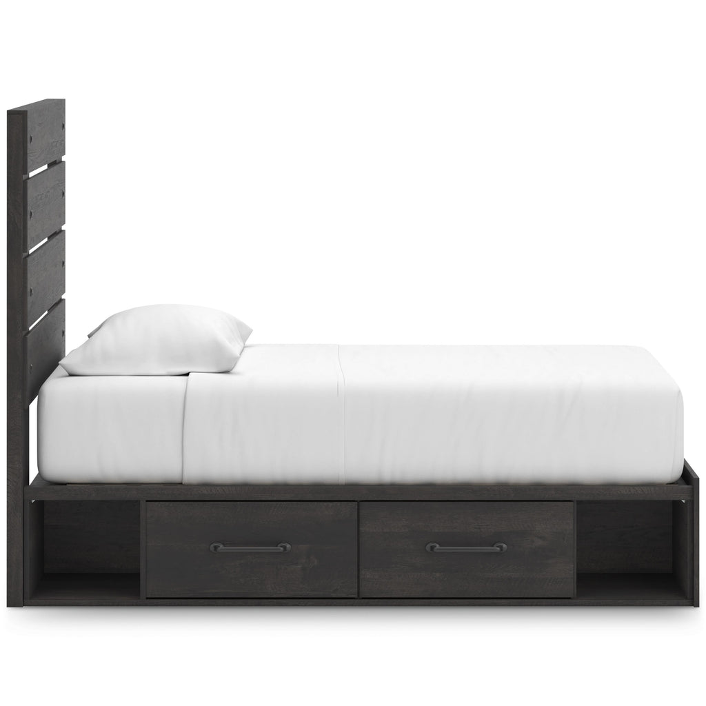 • Includes panel headboard/footboard, rails with side storage and roll slats