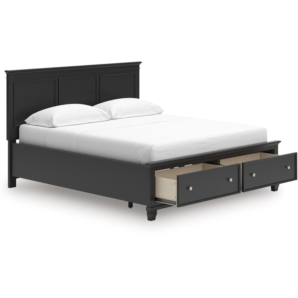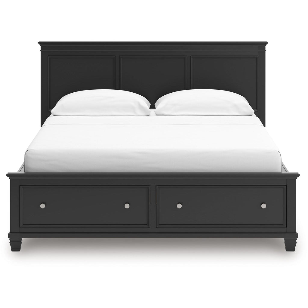 • Includes panel headboard, storage footboard with roll slats and rails