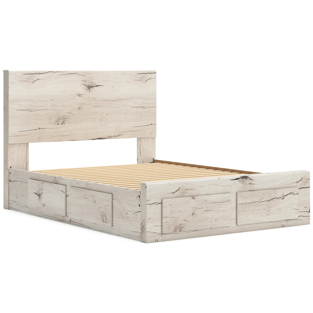 • Includes panel headboard, storage footboard, 2 under bed storage units and roll slats