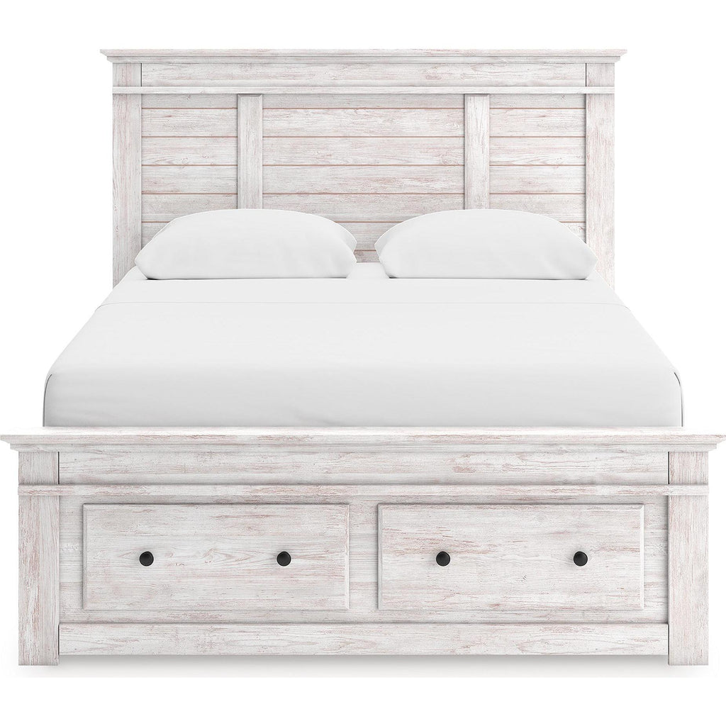 • Includes panel headboard, storage footboard, 2 under bed storage units and roll slats