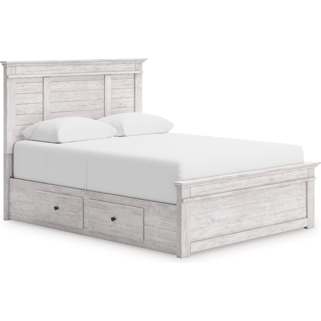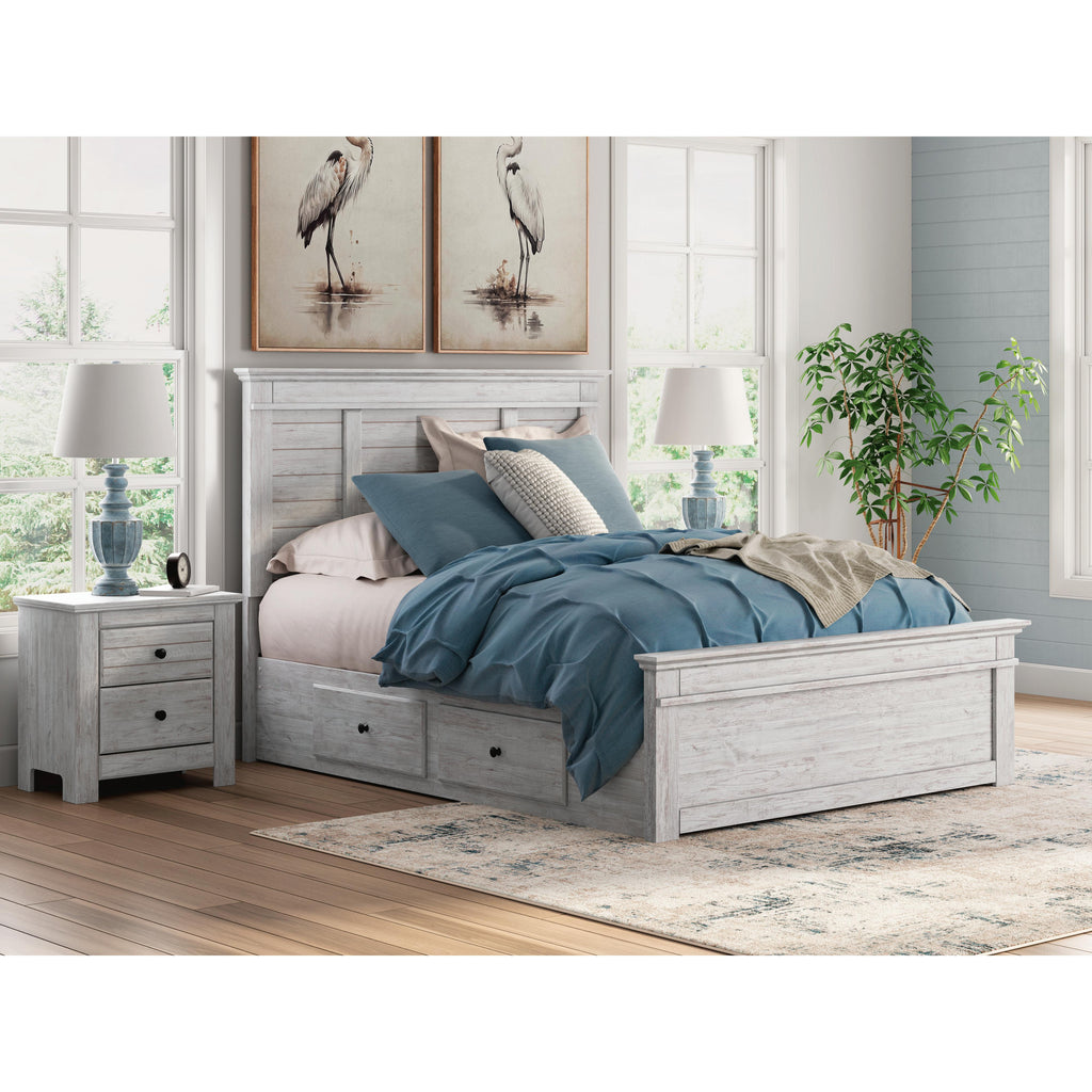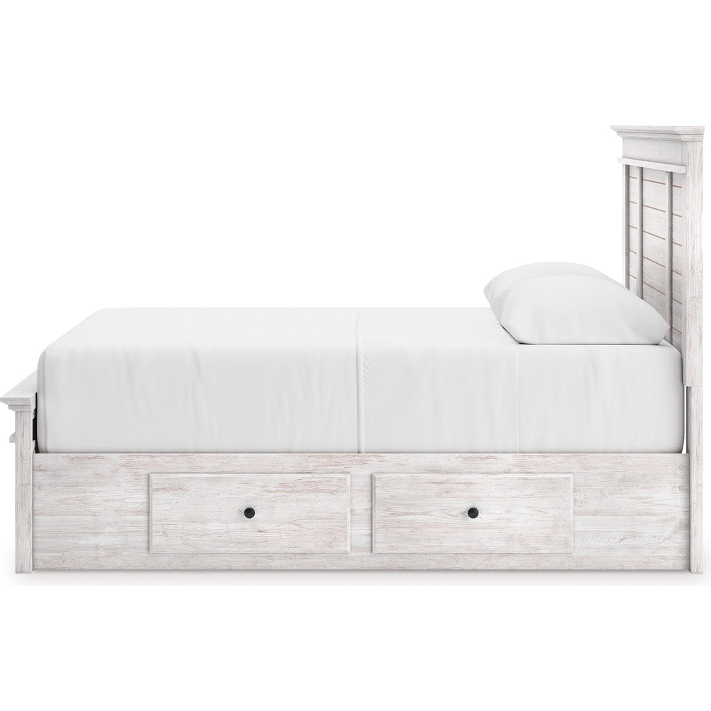 • Includes panel headboard, panel footboard, 2 under bed storage units and roll slats