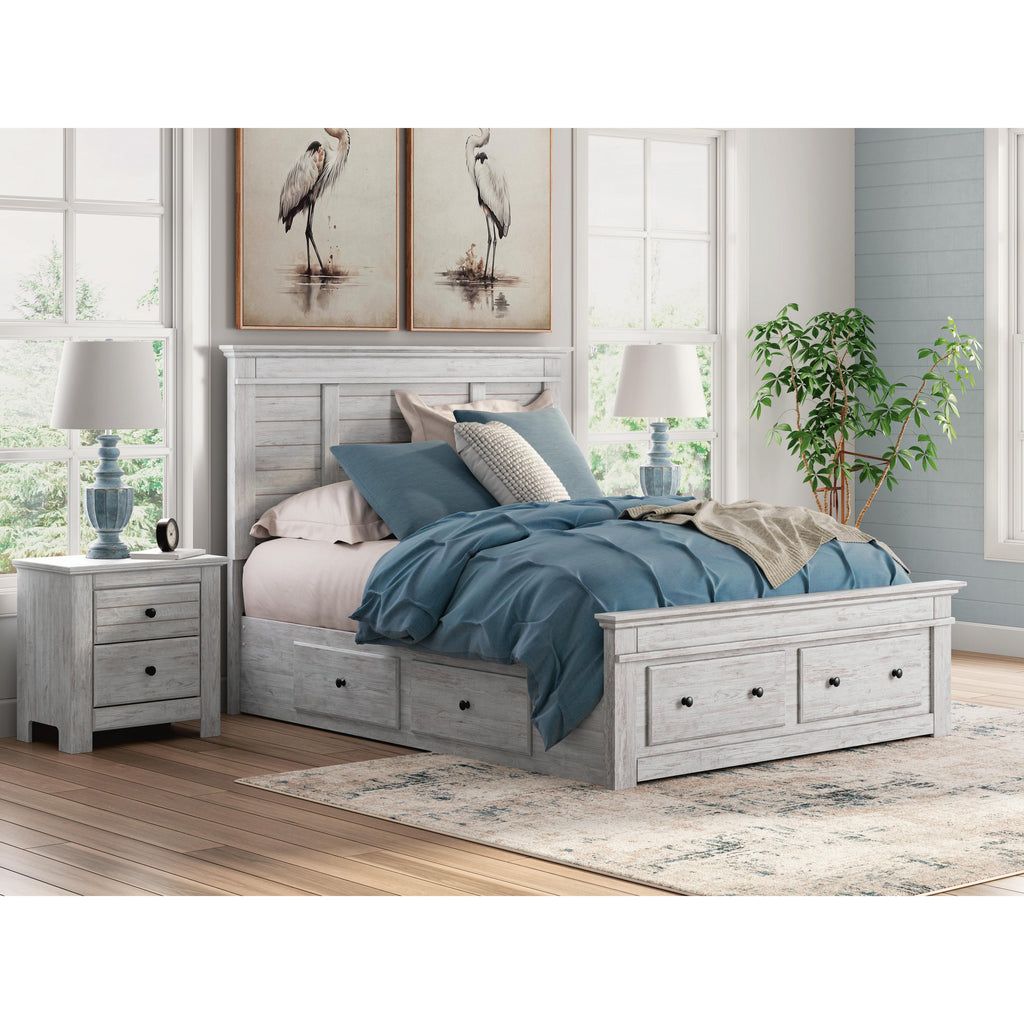 • Includes panel headboard, storage footboard, 2 under bed storage units and roll slats