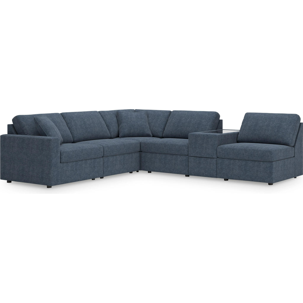 • Includes 6 modular pieces: left-arm facing corner chair, 3 armless chairs, wedge and console with storage