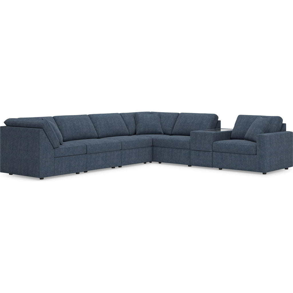 • Includes 7 modular pieces: right-arm facing corner chair, 3 armless chairs, 2 wedges and console with storage