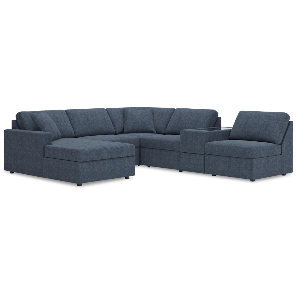 • Includes 6 modular pieces: left-arm facing corner chaise, 3 armless chairs, wedge and console with storage