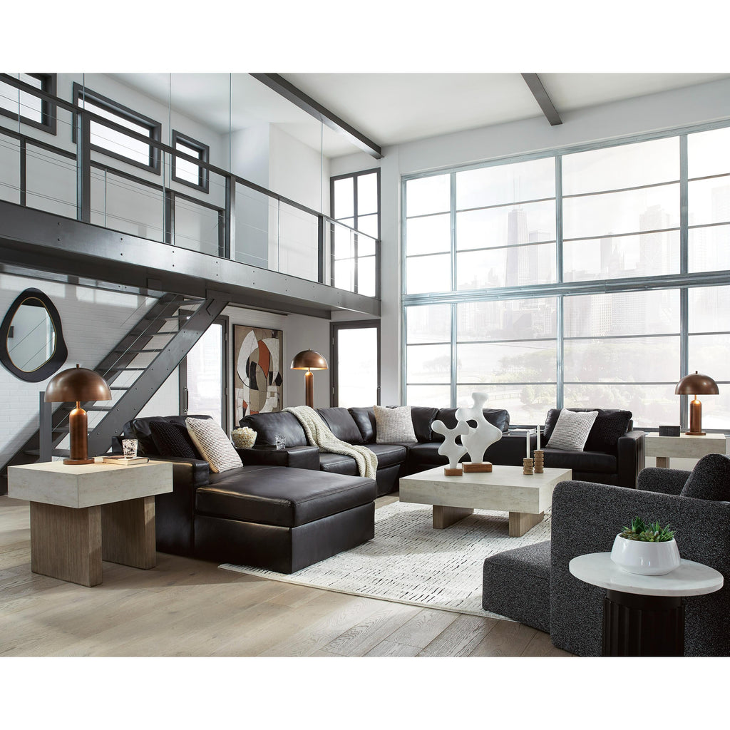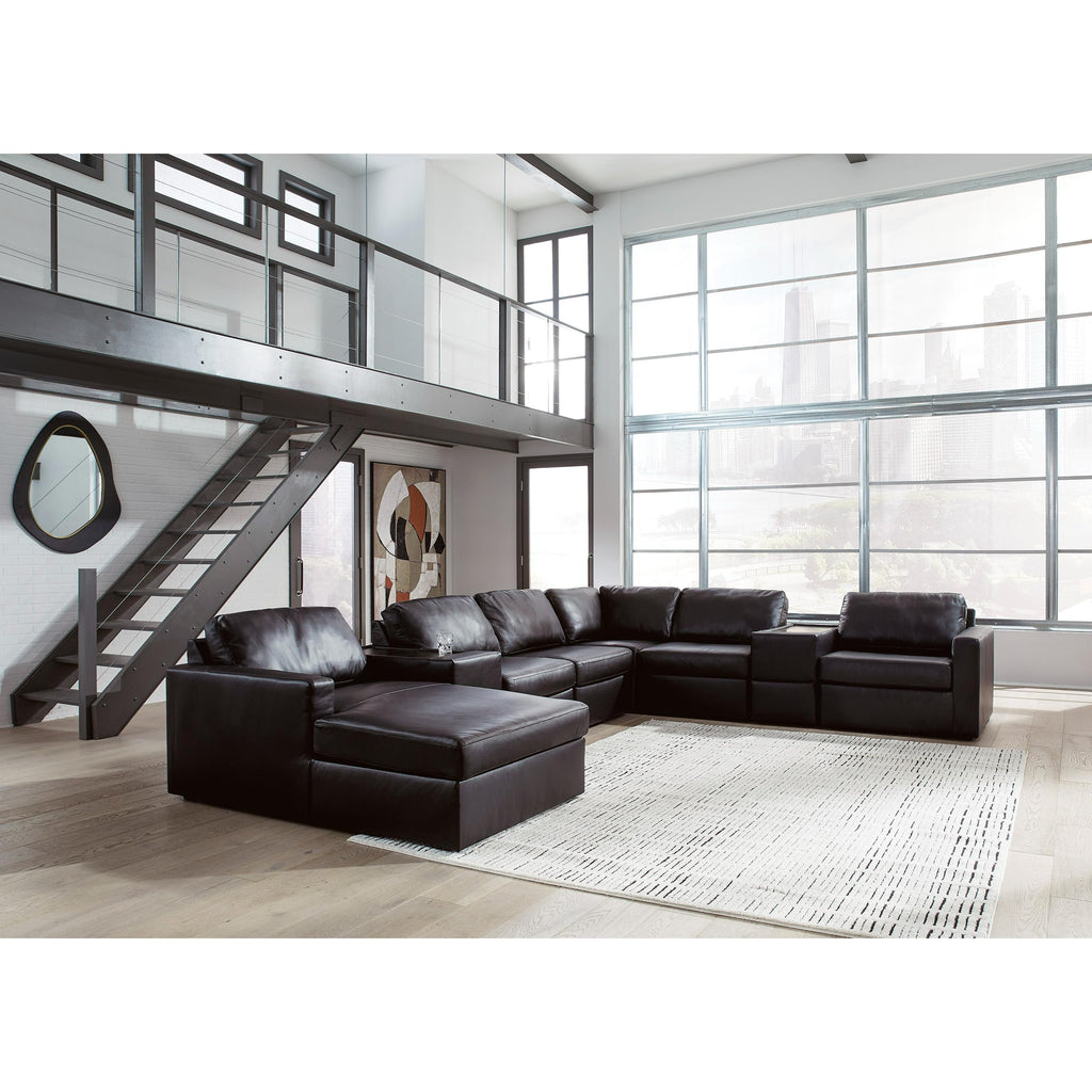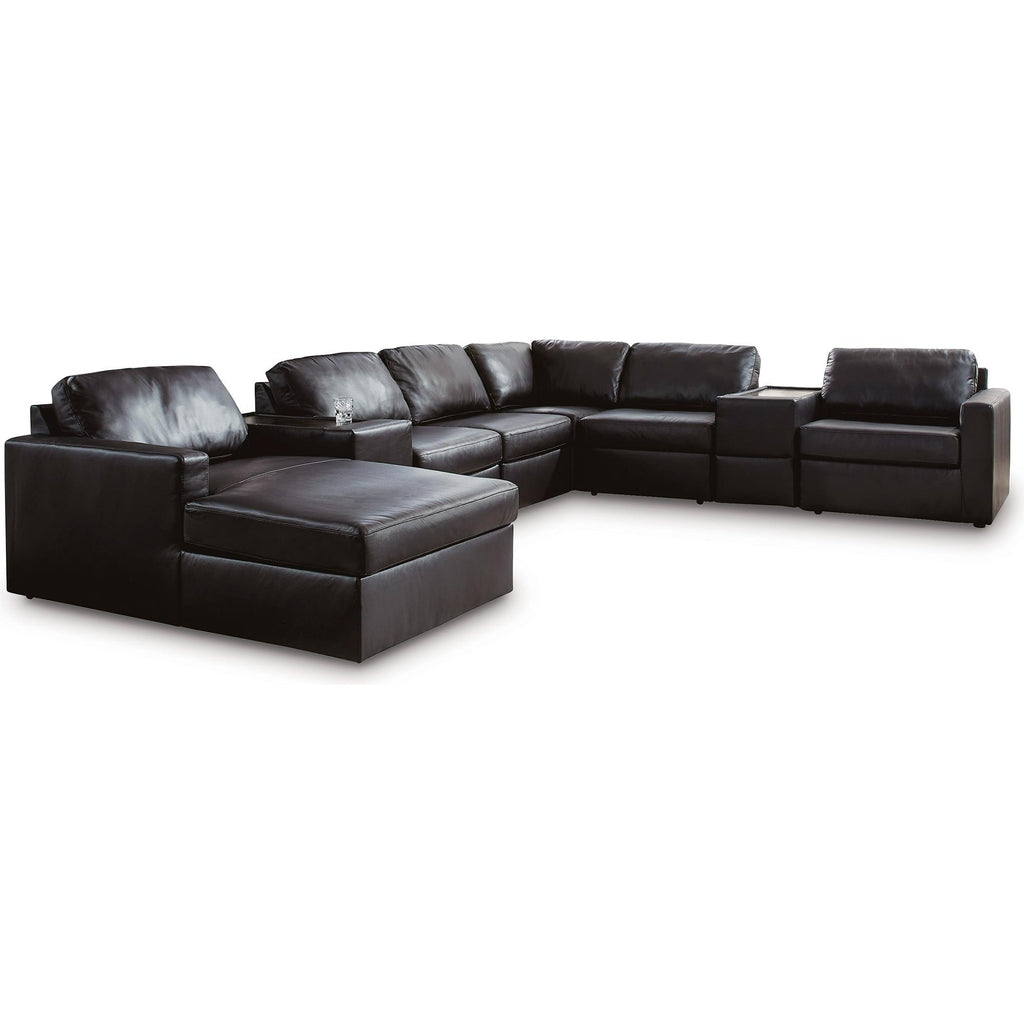 • Includes 8 modular pieces: left-arm facing corner chaise, wedge, 3 armless chairs, 2 consoles with storage and right-arm facing corner chair