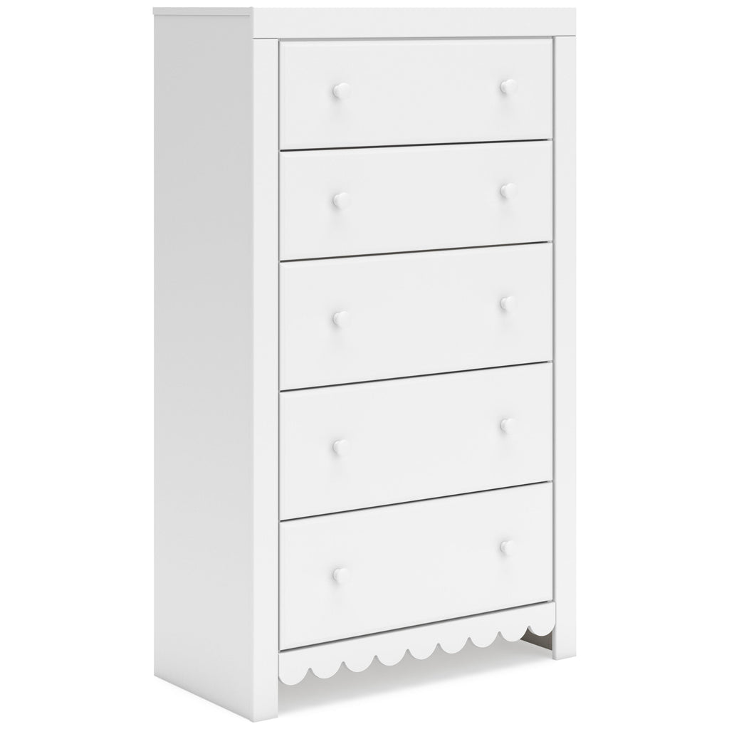 • Drawer interiors are lined with a faux linen laminate for a clean, finished look