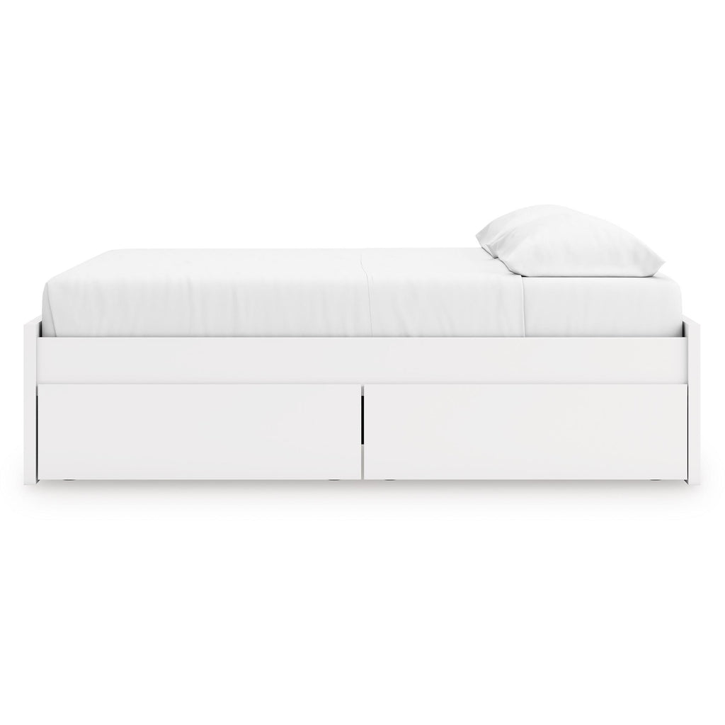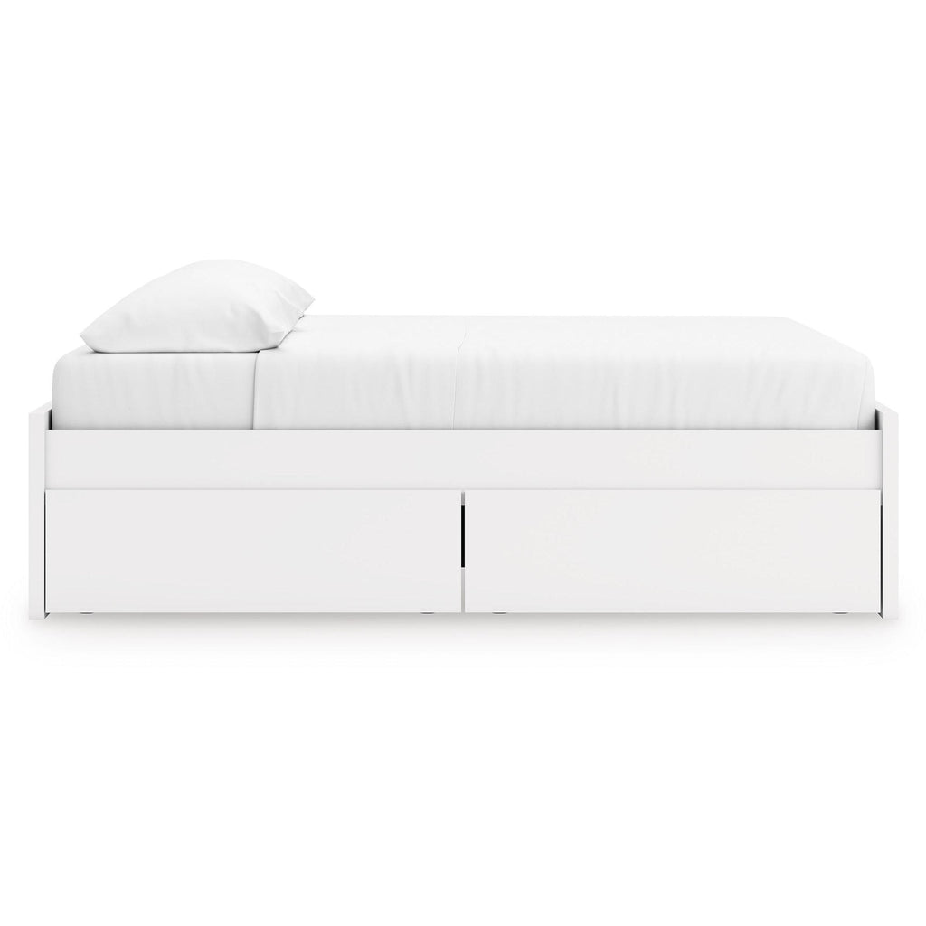 • Includes platform bed panels, platform rails, roll slats and 4 side storage drawers