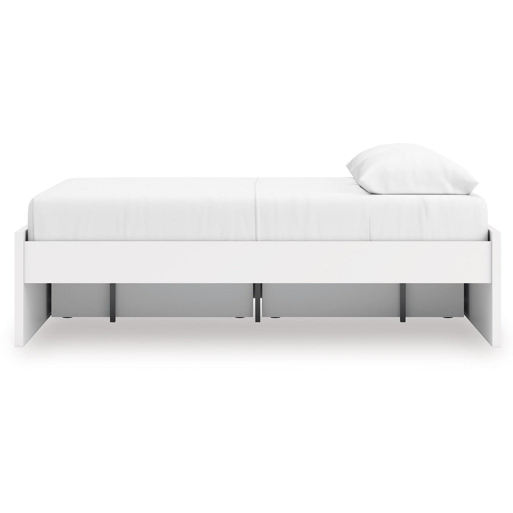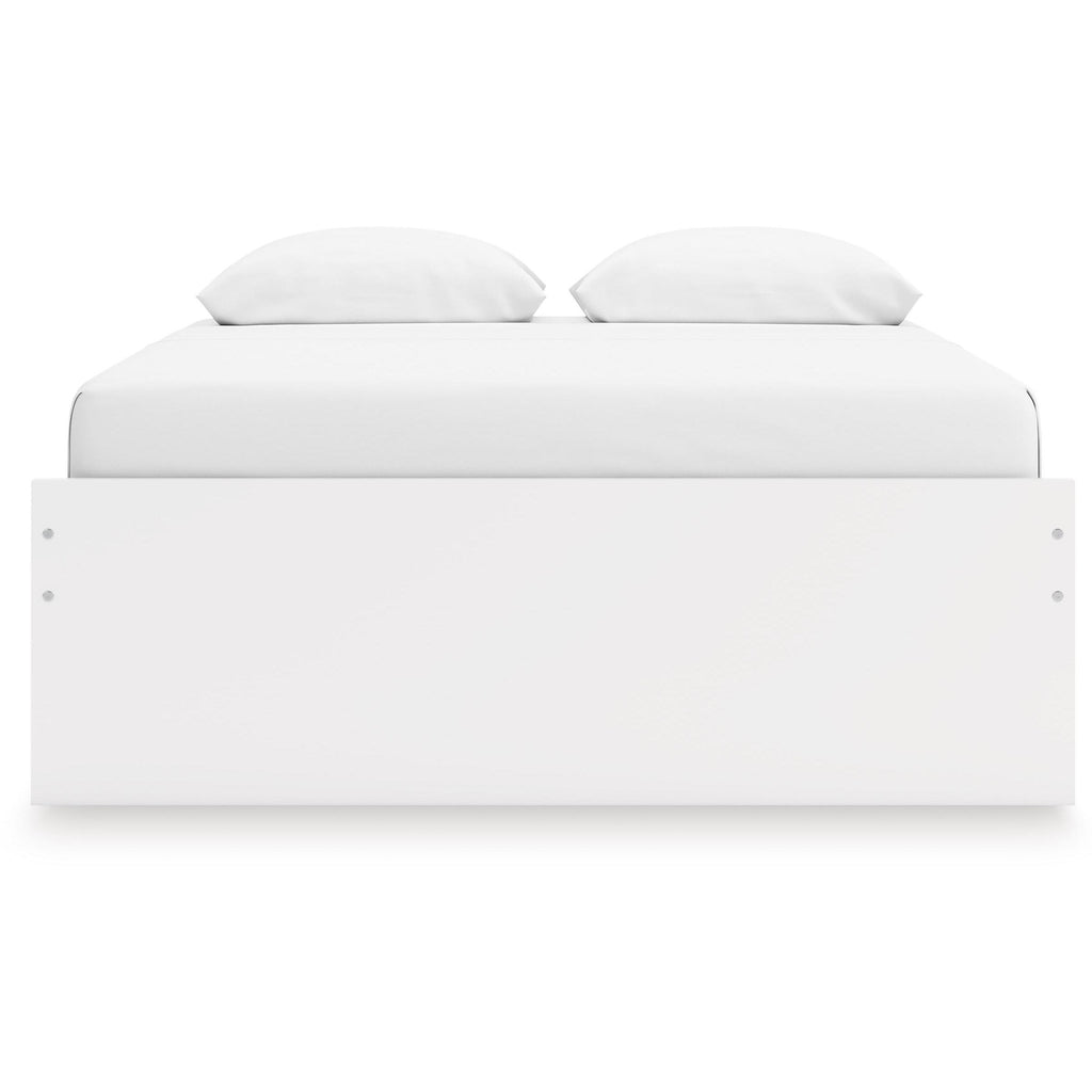 • Includes platform bed panels, platform rails, roll slats and 2 side storage drawers