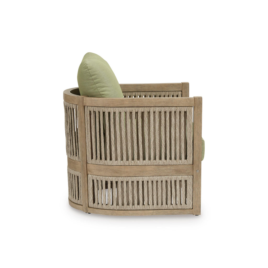 • Made with eucalyptus wood and polyester rope