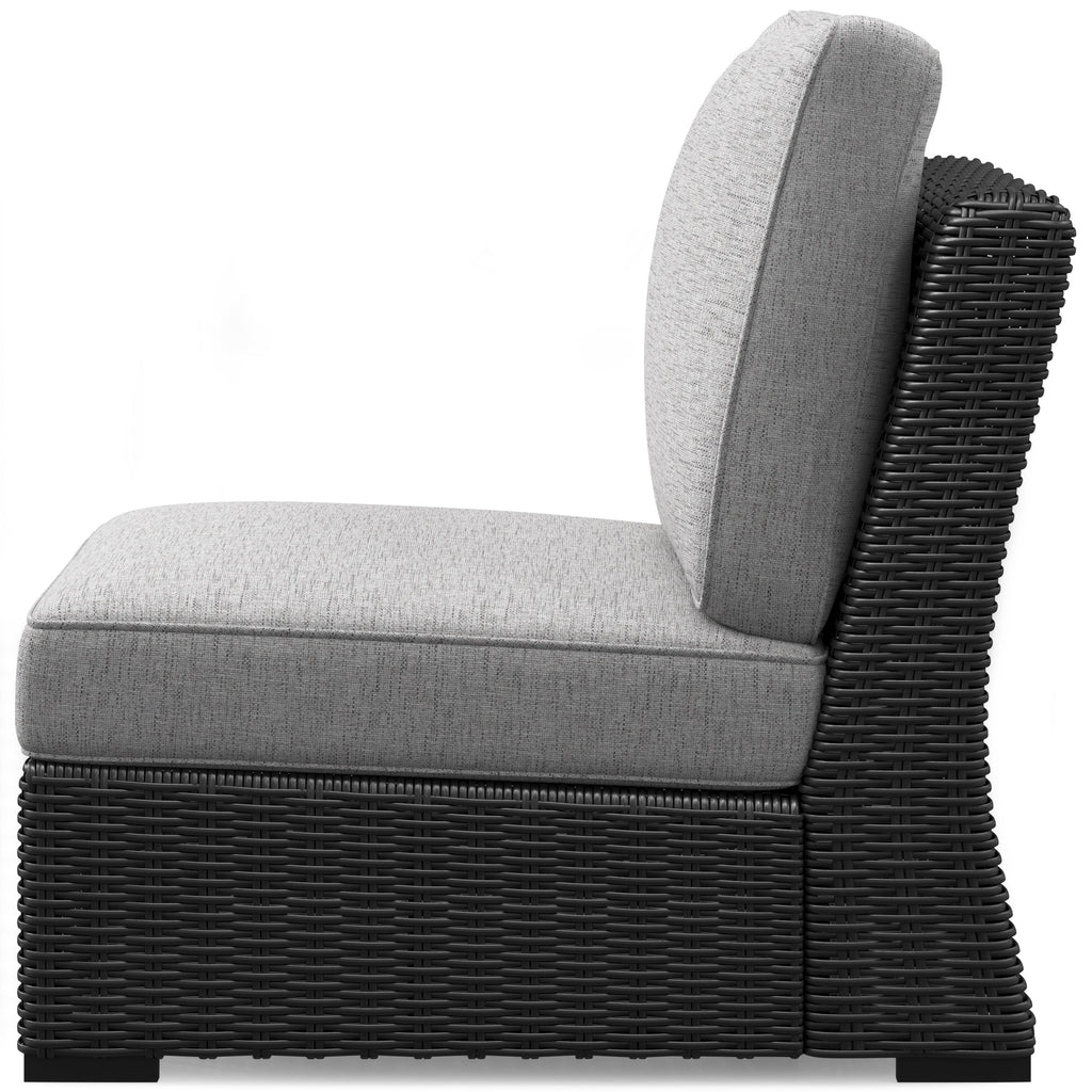 • Includes 5 pieces with cushions: 2-piece loveseat, curved corner chair and 2 armless chairs