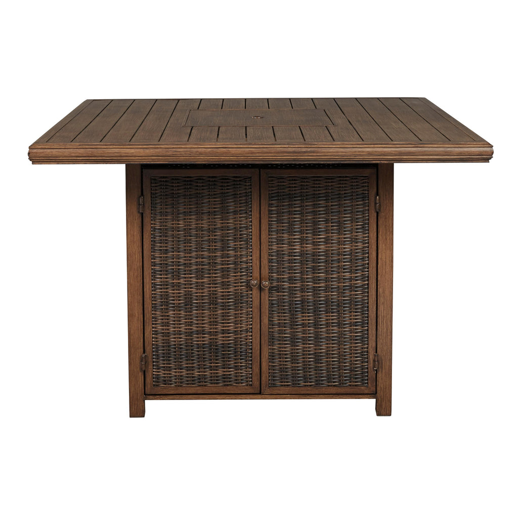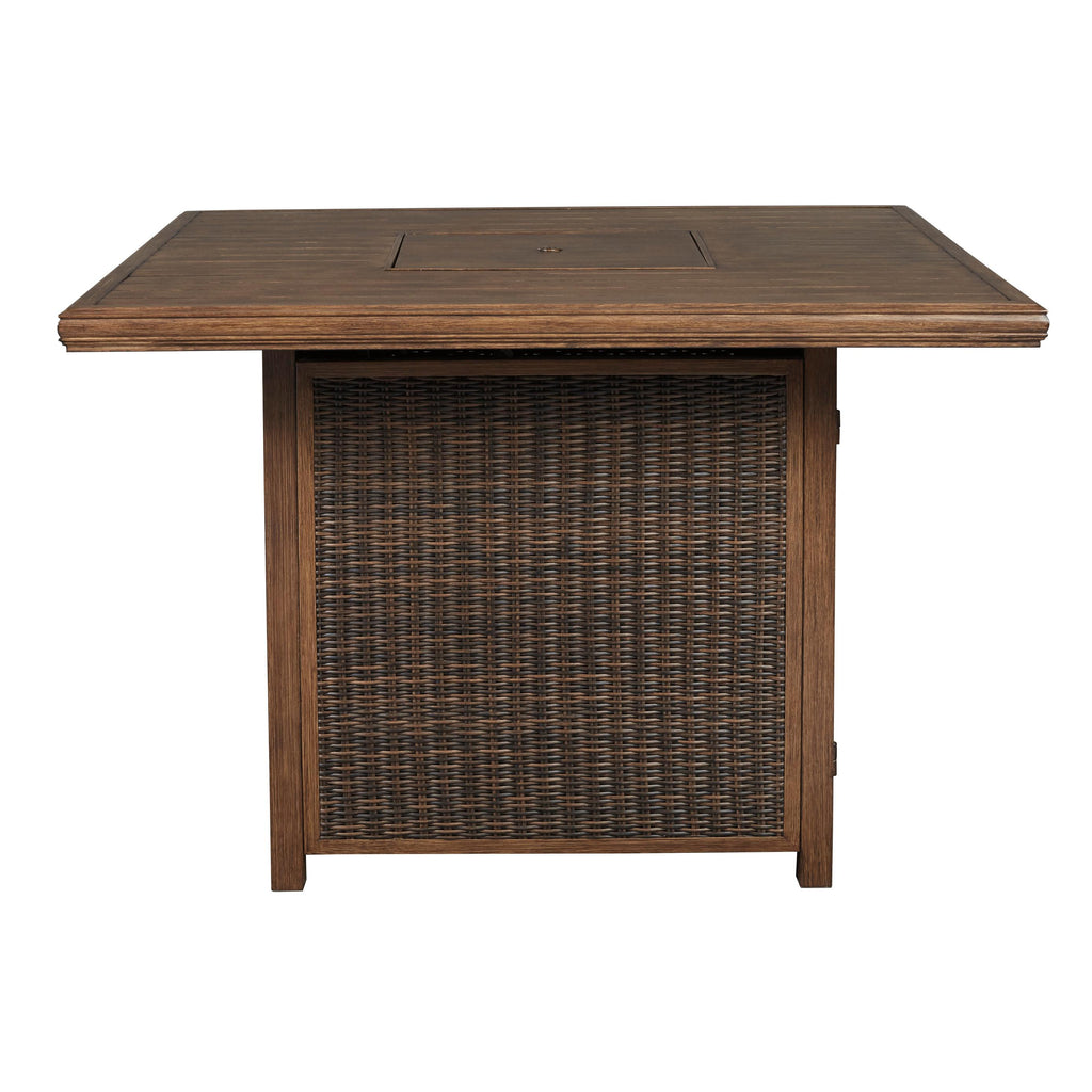 • 56" square fire pit table with CSA-approved 55,000 BTU stainless steel burner, glass beads, burner cover and enclosed storage area with shelves