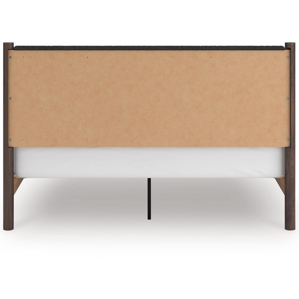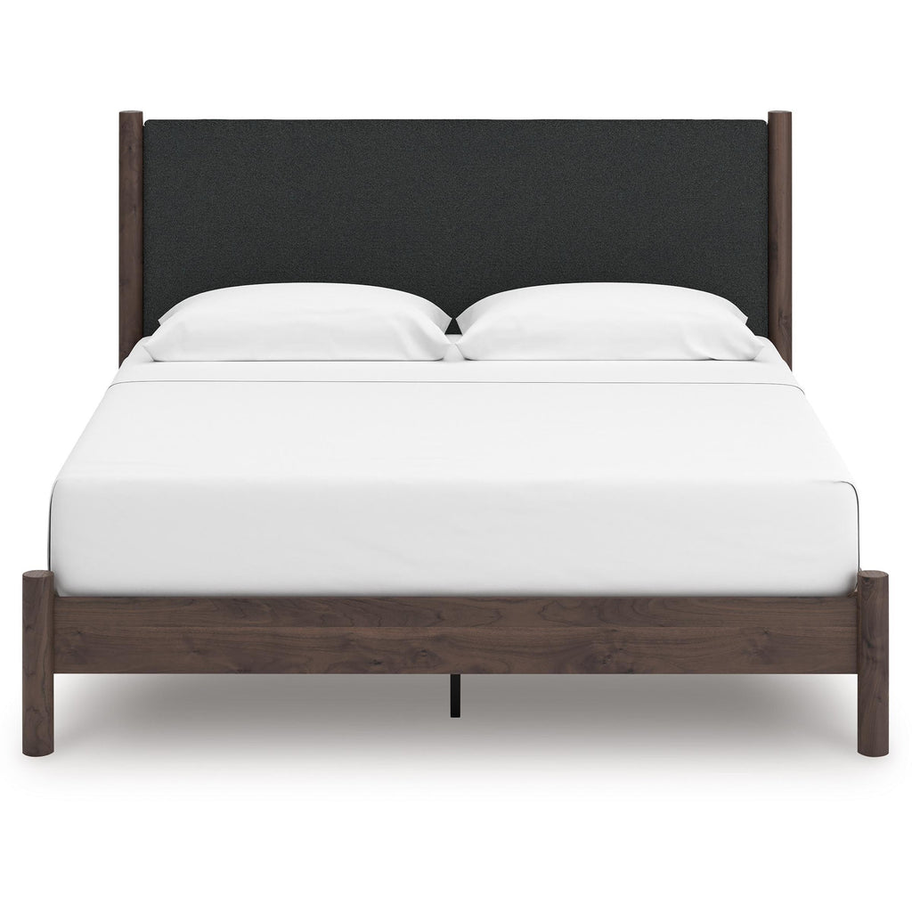 • Includes upholstered panel headboard, platform footboard with rails and roll slats