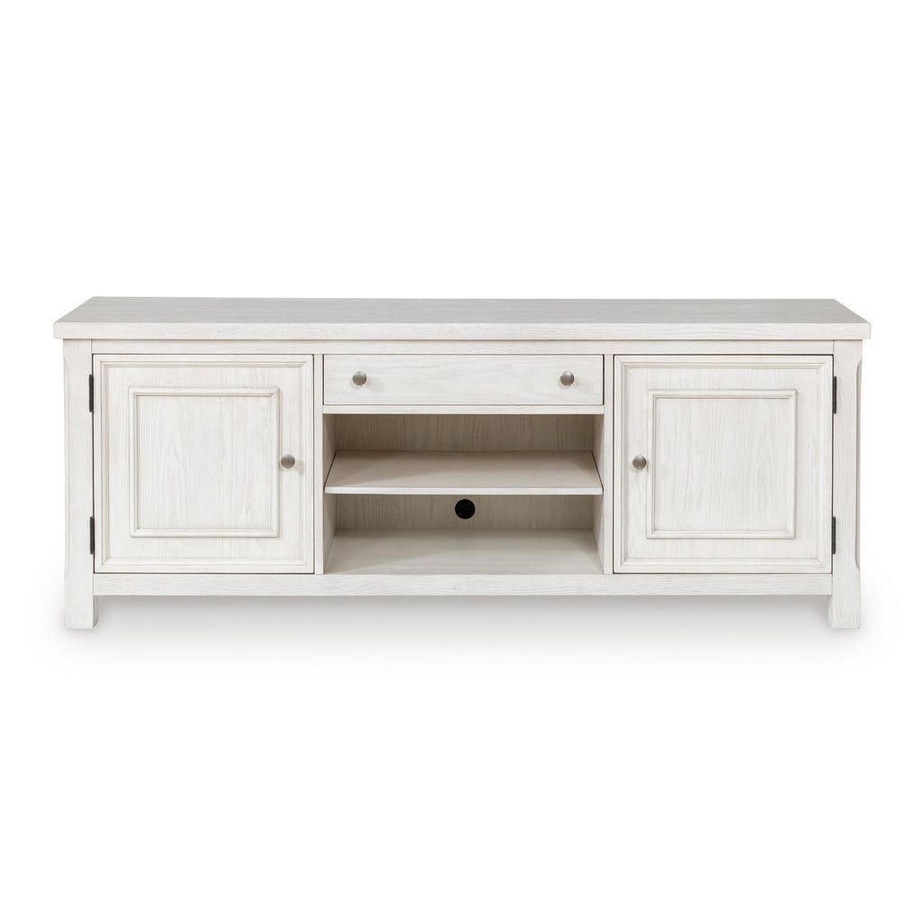 • Antiqued white finish with wood grain texture