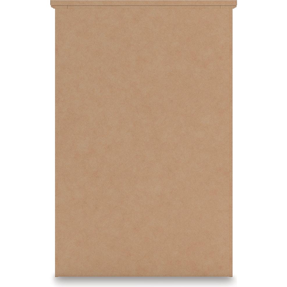 • Drawer interiors are lined with a faux linen laminate for a clean, finished look
