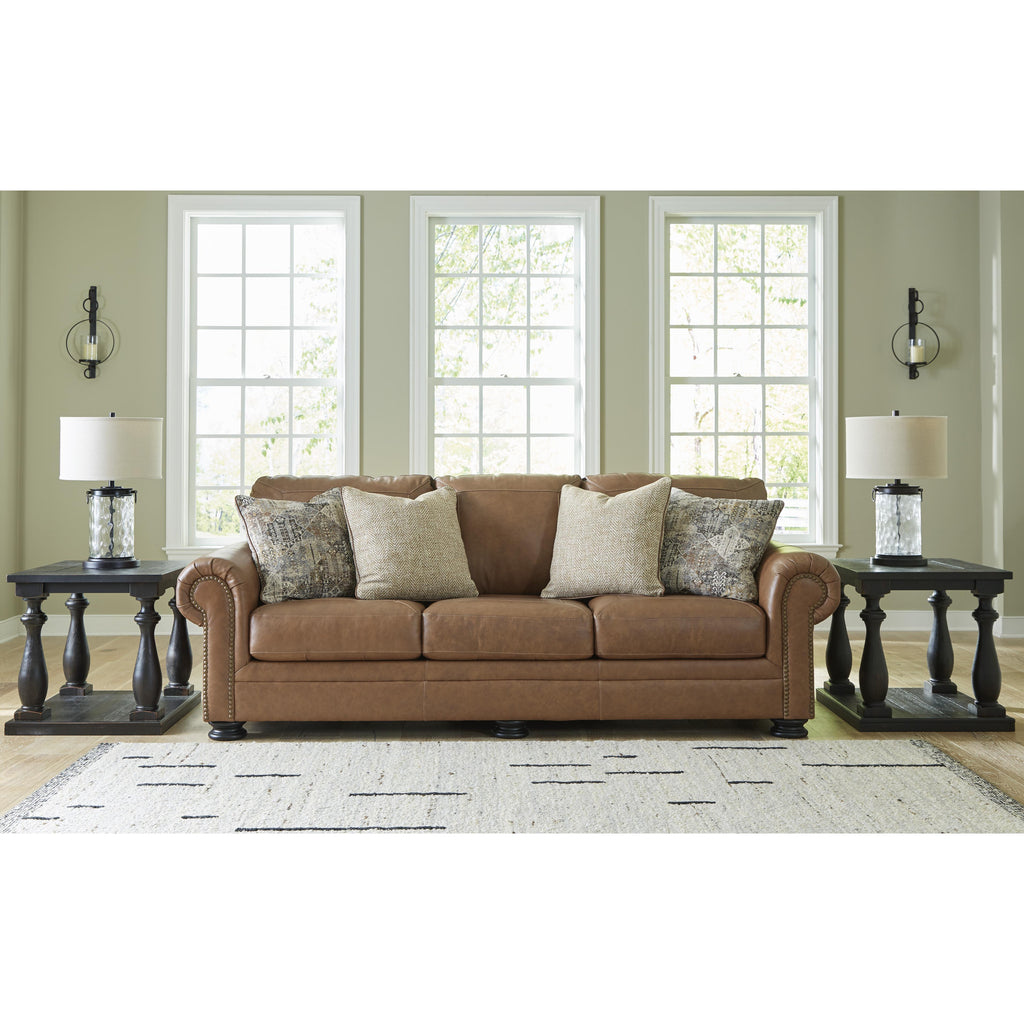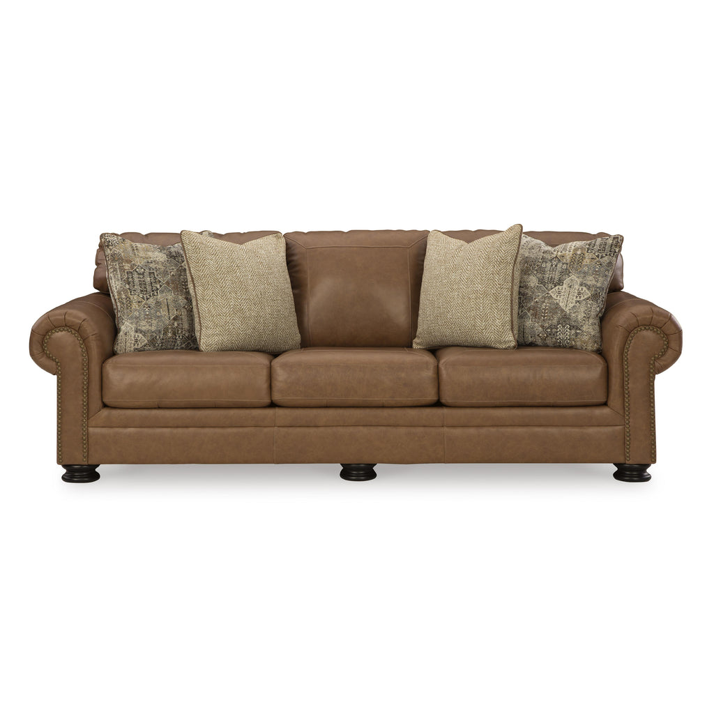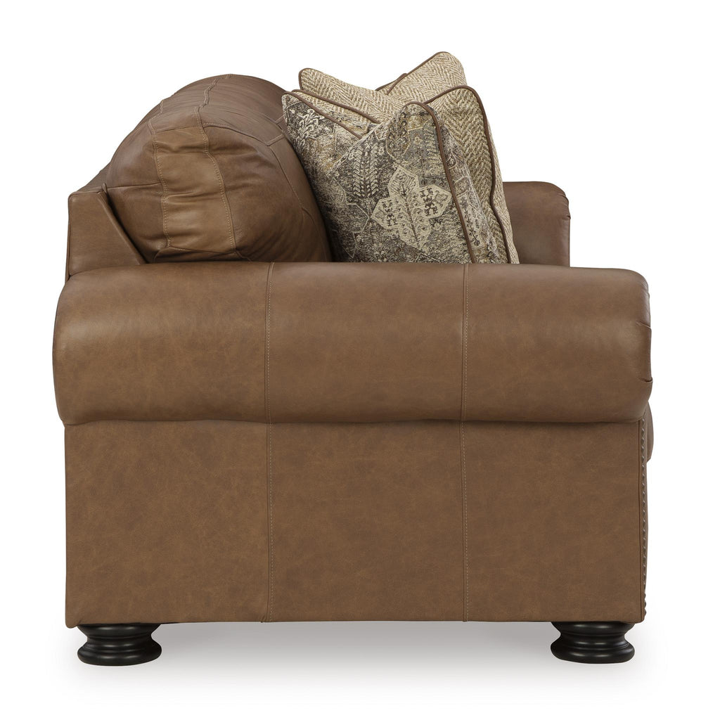 • Genuine leather covers inside areas such as the back, seat and arm cushions; skillfully matched faux leather covers the remaining areas