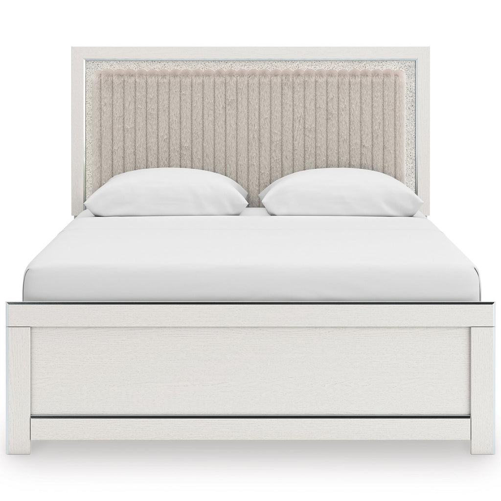 • Includes upholstered panel headboard, panel footboard, platform rails and roll slats