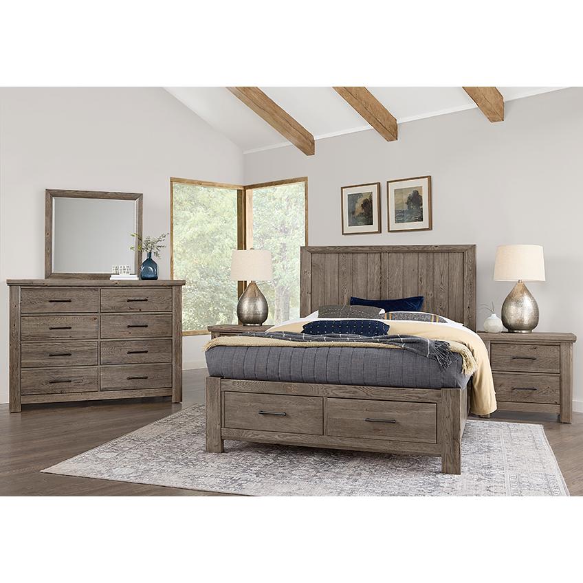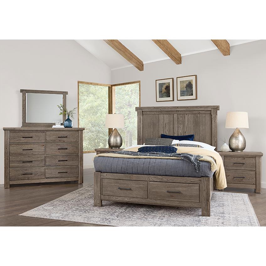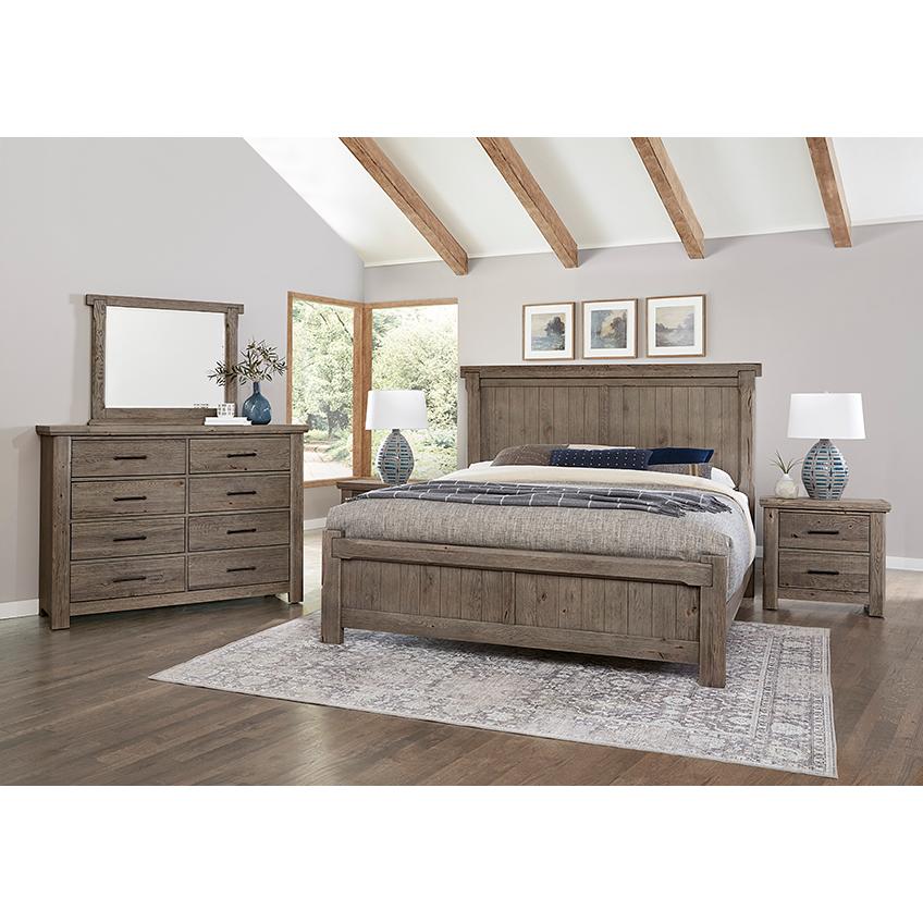 • Vaughan Bassett has developed a patent-pending process that allows them to accelerate how wood ages. We have kept the splits; knots; cracks; and the bold grain pattern found in Oak lumber to create this reclaimed look in this beautiful and unique bedroom